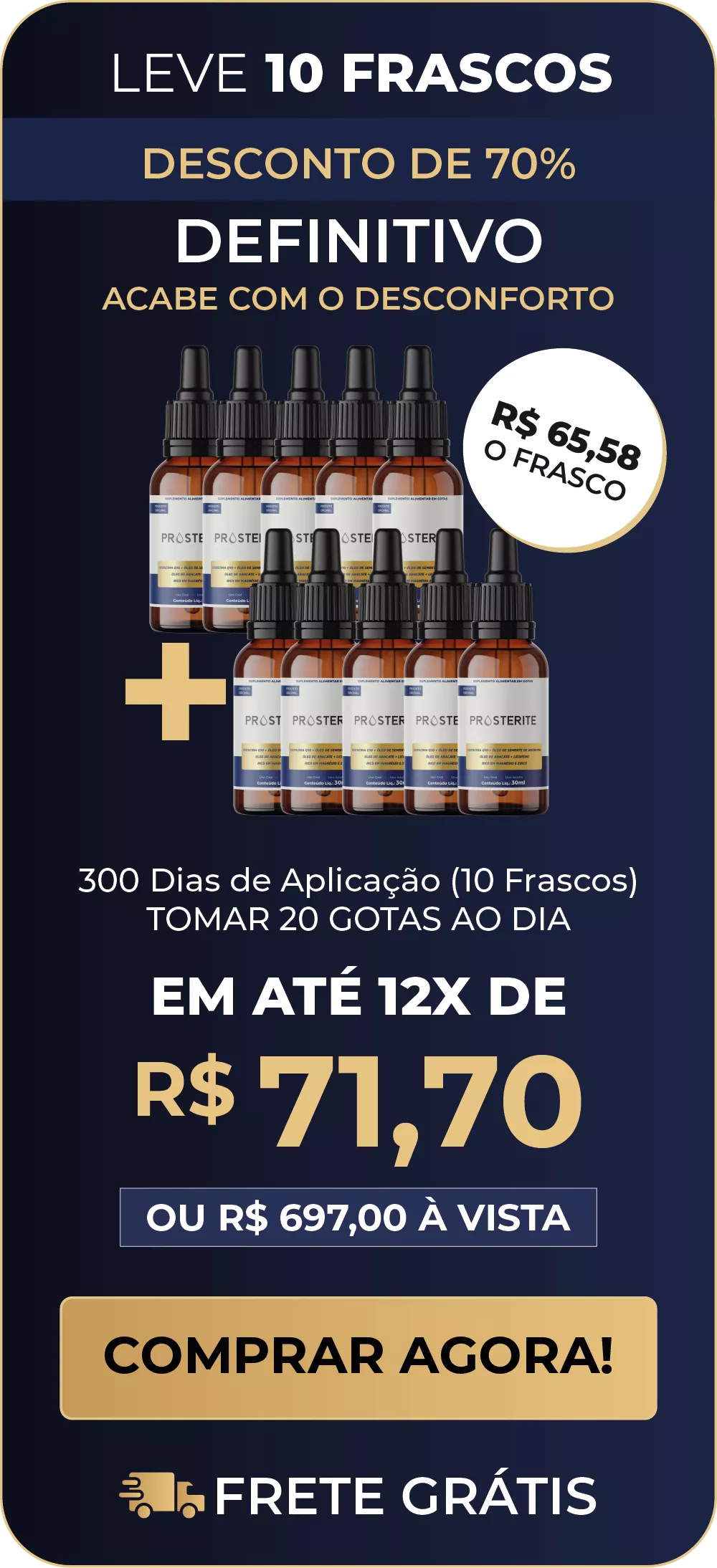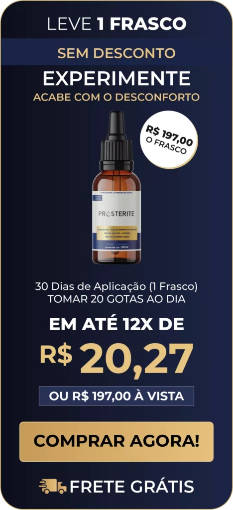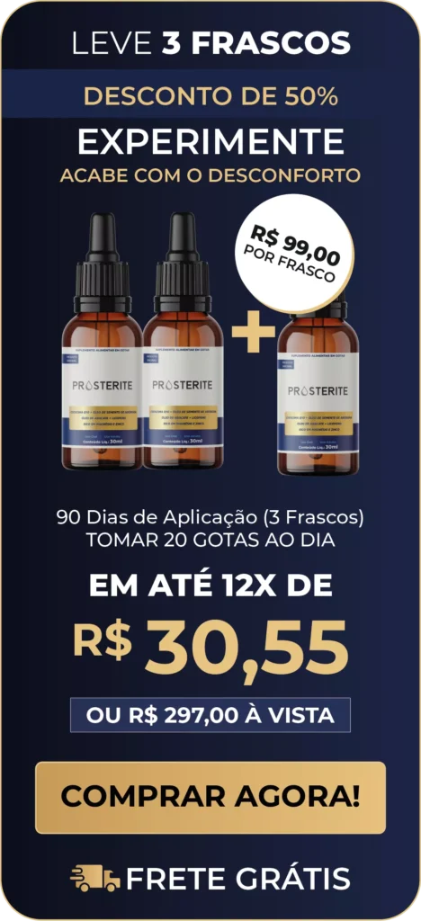 O Prosterite combina ativos poderosos que desinflamam a próstata, aliviam o desconforto urinário e ainda recuperam sua energia sexual.